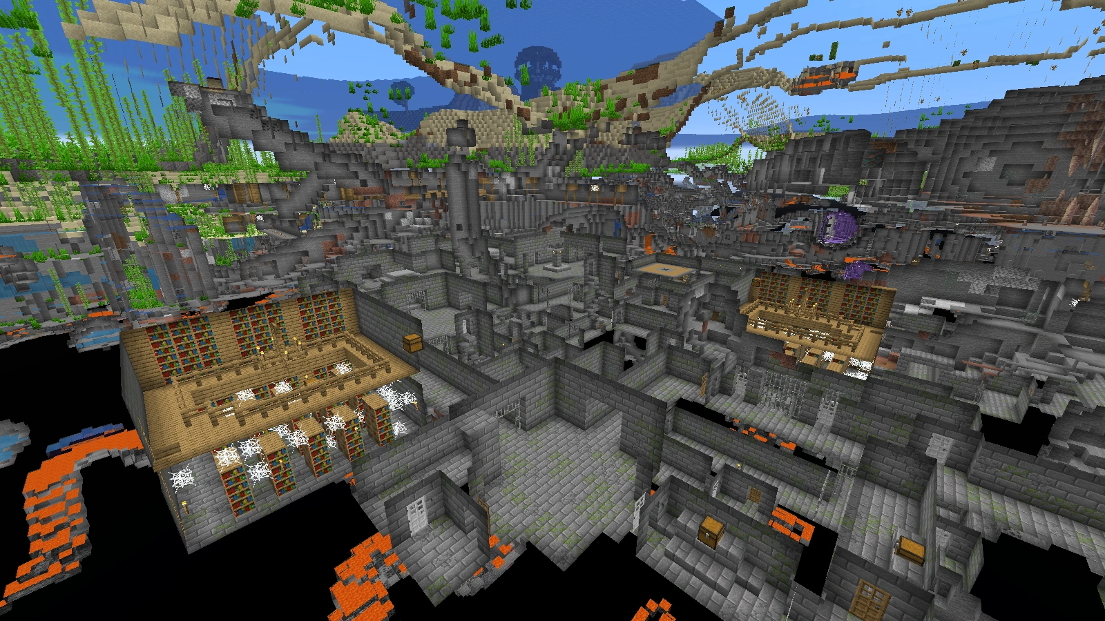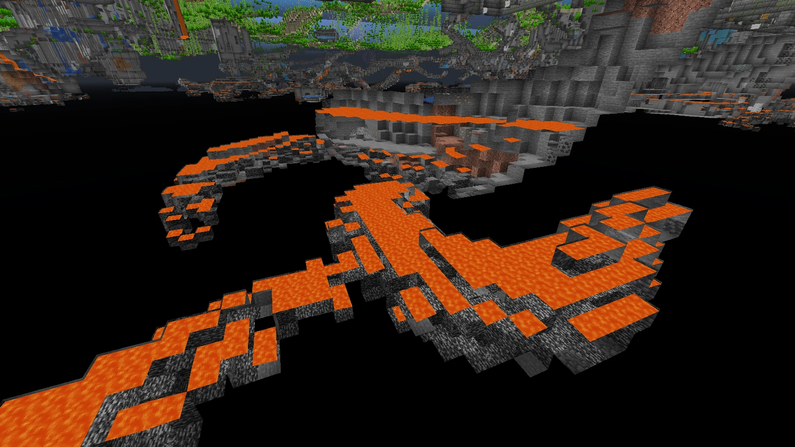 Wenn man unter die Oberfläche geht, kann man Hohlräume sehen. Unbeleuchtete Hohlräume erscheinen jedoch nur als schwarze Gebilde, ohne dass man erkennen kann, was darinnen ist. Abhilfe schafft das Einnehmen eines Trankes der Nachtsicht. Dies muss man jedoch vor dem Wechsel in den Zuschauermodus tun, weil man im Zuschauermodus keine Tränke einnehmen kann, oder man verwendet den Befehl /effect.