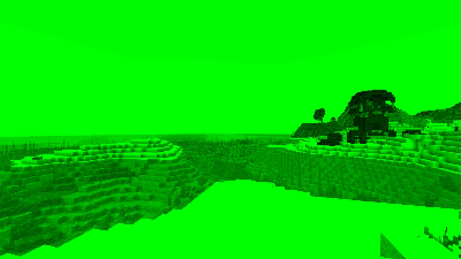 | Creeper | Verpixelte und grün gefärbte Sicht |
