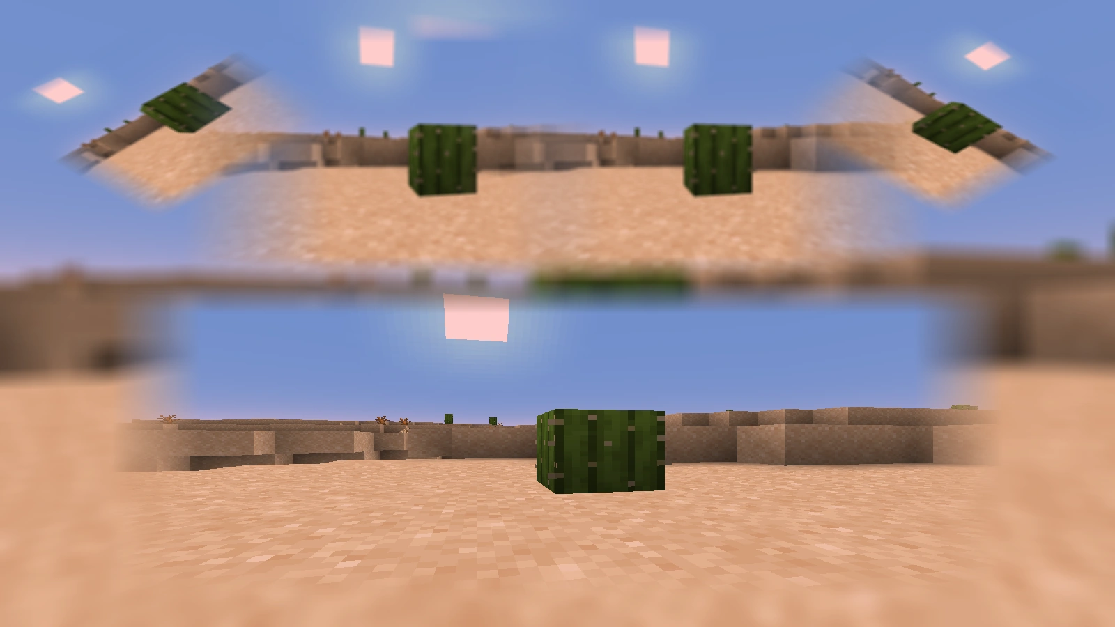 - Wenn man einen Creeper anklickt, sieht man die Welt grün und pixelig.