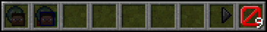 - 2 (Blau umrahmter Spielerkopf vor Enderauge): Zu einem bestimmten Spieler aus einem bestimmten Team teleportieren. Im Unterschied zu der normalen Spielerauswahl wird im ersten Schritt nur exemplarisch ein Spieler für jedes Team angezeigt, dessen Kopf mit der Teamfarbe umrahmt ist. Wählt man eine Teamfarbe aus, erscheinen alle Spieler, die diesem Team zugeordnet sind. Die Zuordnung zu Teams erfolgt über die Anzeigetafel.