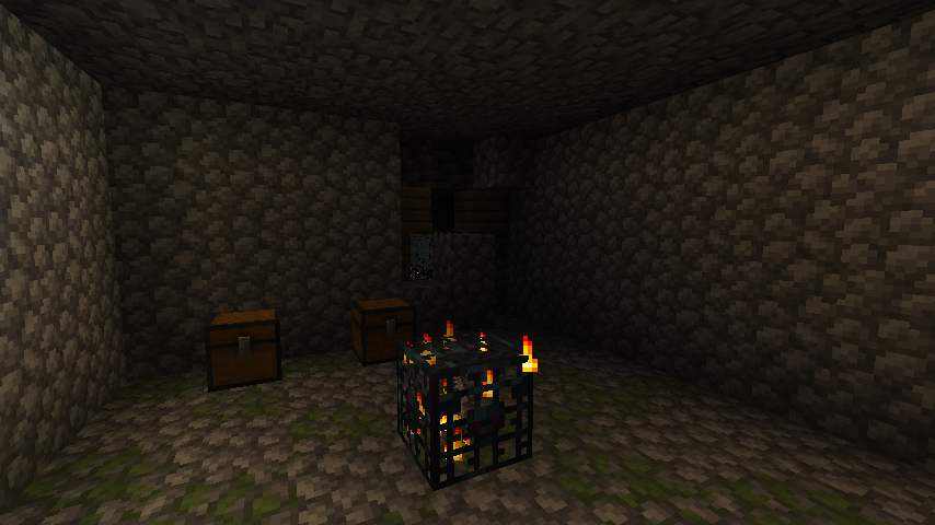 - Διαδρόμους - των 3Χ3 blocks με στηρίγματα φτιαγμένα από φράχτες και σανίδες (ενίοτε συμπληρωματικά με δαυλούς), σπασμένες ράγες, περάσματα (ξύλινοι στύλοι), σκάλες, μπαούλα (περιέχοντα πρώτες ύλες) και Δημιουργούς Αραχνών των Σπηλαίων, περικυκλωμένους από αραχνοϊστούς. Το generator συνεχίζει να προσθέτει κομμάτια σε μια έξοδο έως ότου αυτή φτάσει ένα "βαθος" 8 (8 κομματιών από μια έξοδο), το οποίο συνεπάγεται ένα ανώτατο όριο είκοσι τεσσάρων (24) κομματιών.