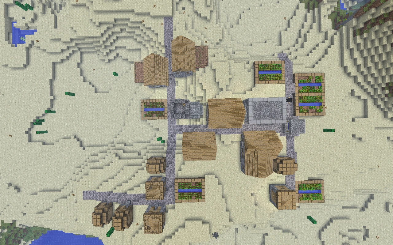 | Las aldeas ahora pueden generarse en el bioma taiga (pero no sus variantes), y están hechas de madera de abeto. | |||||