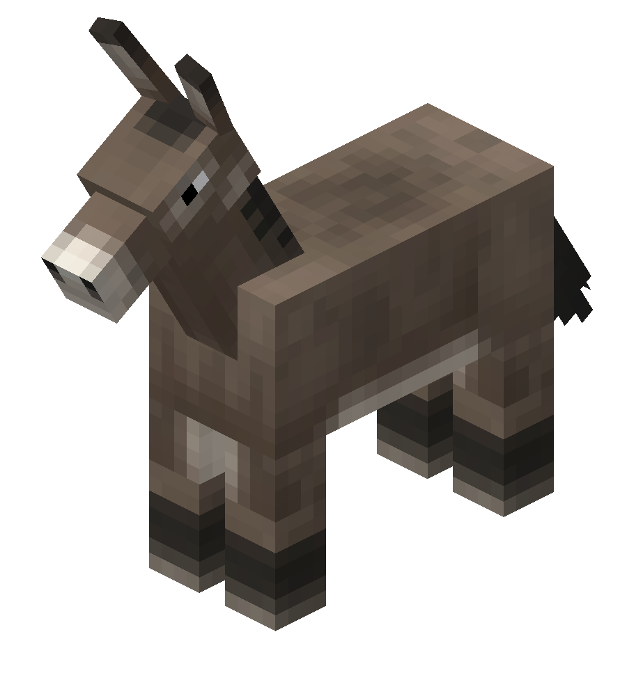 El burro es una criatura pasiva poco común encontrada en la Superficie, que se halla en llanuras y sabanas. Son un medio de transporte de objetos móvil al equiparles un cofre, que permite almacenar objetos en su interior y al equiparse una montura pueden ser montados y controlados.