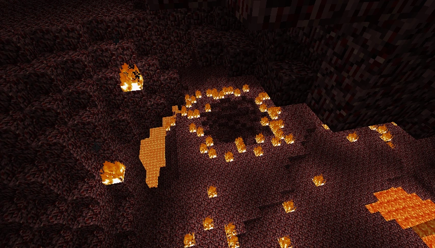 Un cráter creado al intentar dormir en el Nether