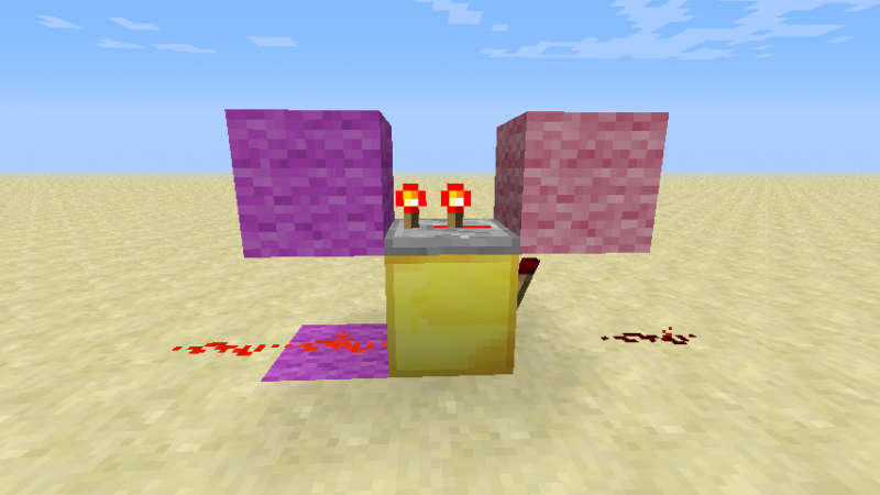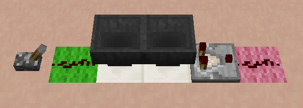 Los bloques de lana rosa y magenta o los senderos de redstone se pueden usar para la salida; el lado magenta se invertirá.