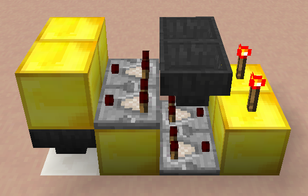 - Variaciones: El polvo situado enfrente de los repetidores pueden ser reemplazados por bloques conductores, para ahorrar redstone.
