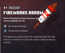 Cuando se usa la flecha de fuegos artificiales, se dispara un fuego artificial que explota en un radio similar a Dinamitas al impactar con bloques o criaturas.