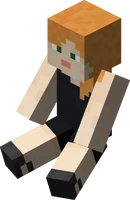 Alex sentándose. Este archivo (o parte de él) pertenece con derechos de autor a Mojang Studios Esta captura de pantalla, textura, audio, canción u otro activo de Mojang, o derivado de los activos de Mojang -