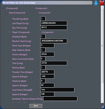 | NBTExplorer - Forum Post | Plantilla:Tc | Inspirado y basado en NBTEdit, este programa permite ver y editar archivos NBT a través de un control de árbol de Windows. Admite archivos NBT comprimidos y sin comprimir, y permite la edición directa de las estructuras NBT en archivos MCRegion y Anvil, level.dat, etc. |