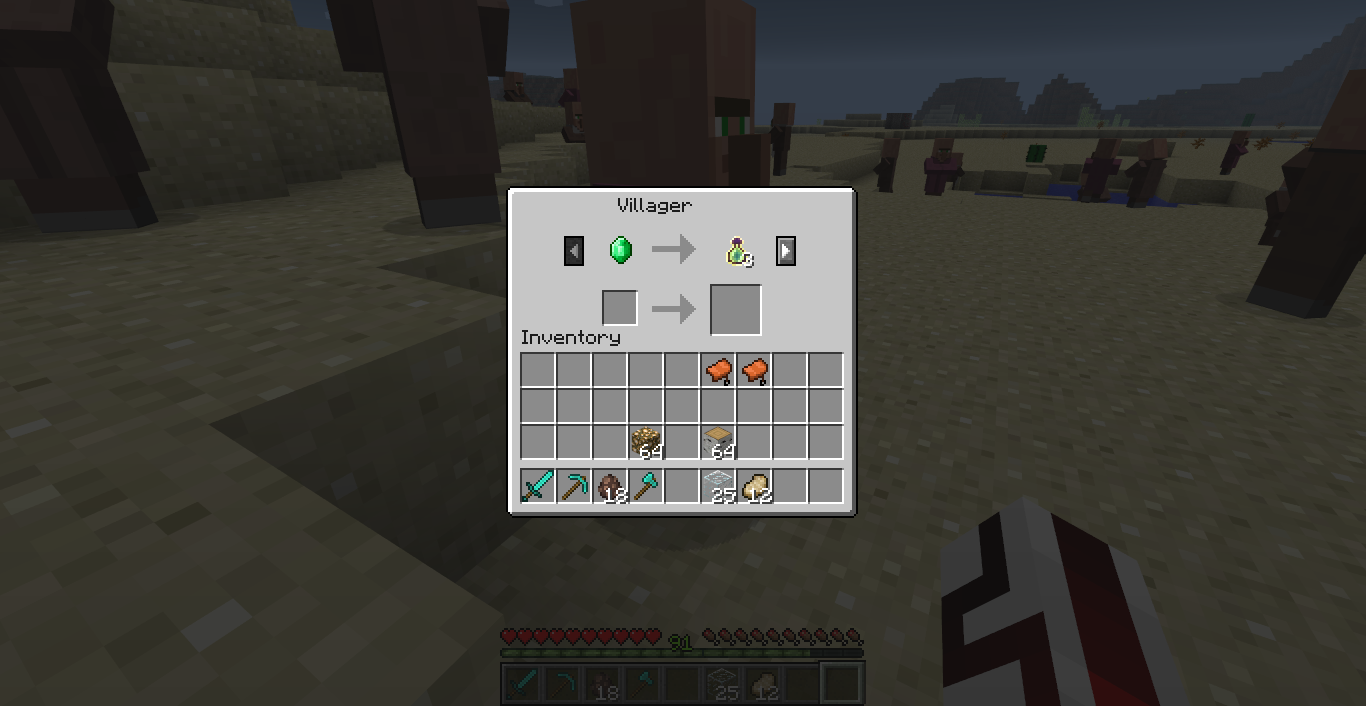 | 1.3.1 | 12w21a | Con la implementación del sistema de comercio, el jugador puede hablar con los aldeanos clérigos para conseguir de 2 a 4 frascos con experiencia por 1 esmeralda. | |||