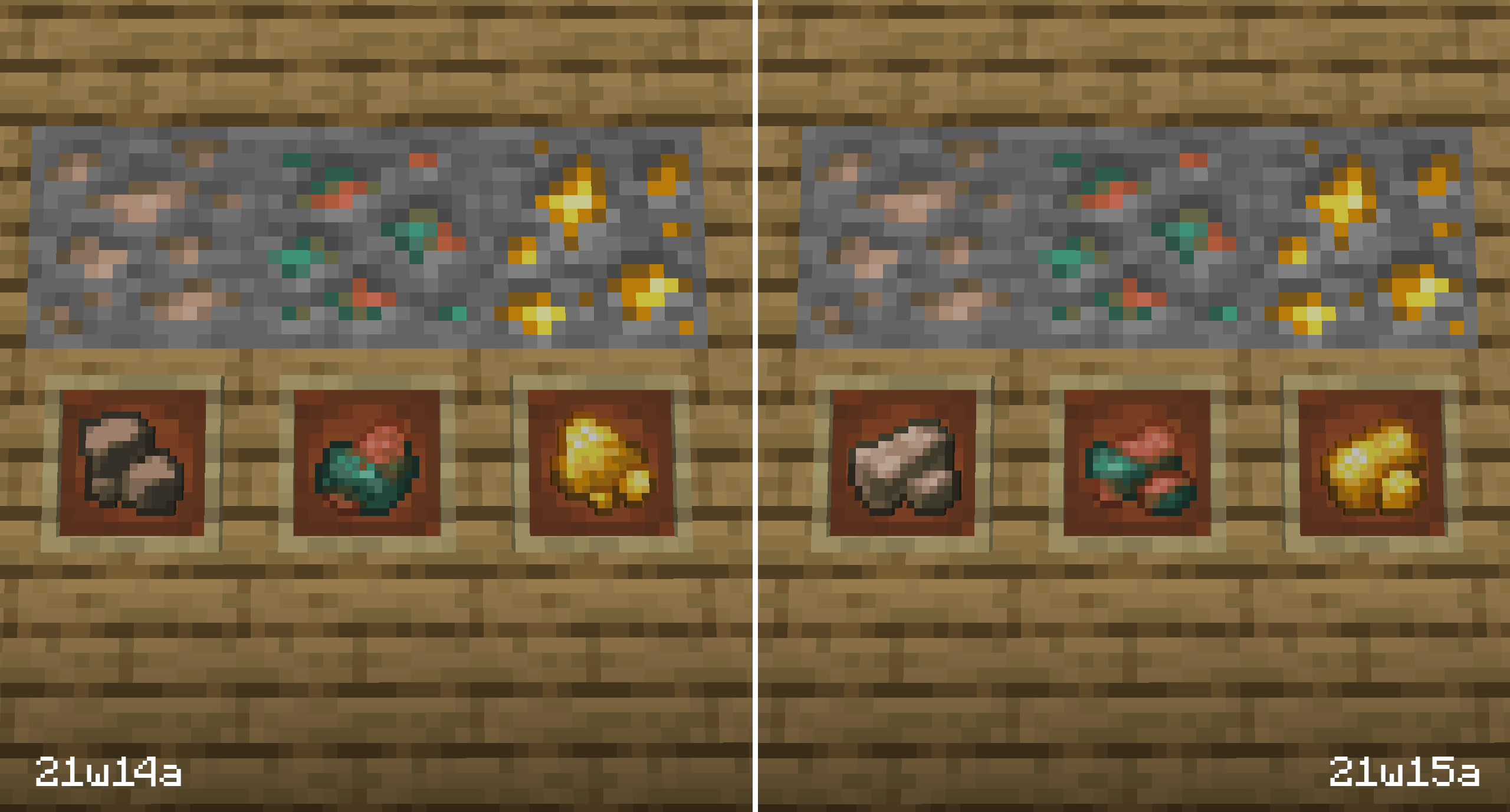 - MC-218944 – Copper ore and deepslate copper ore have inconsistent textures.