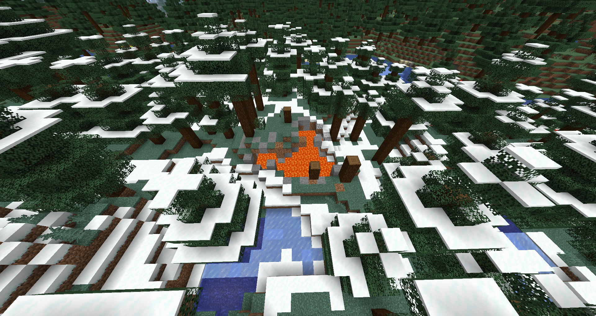 Los lagos de lava se generan con una pequeña bolsa de aire sobre ellos, lo que puede resultar en una cubierta flotante de arena, capa de nieve flotando o incluso árboles flotando sobre el lago. Los lagos de lava pueden hacer que los árboles se quemen.