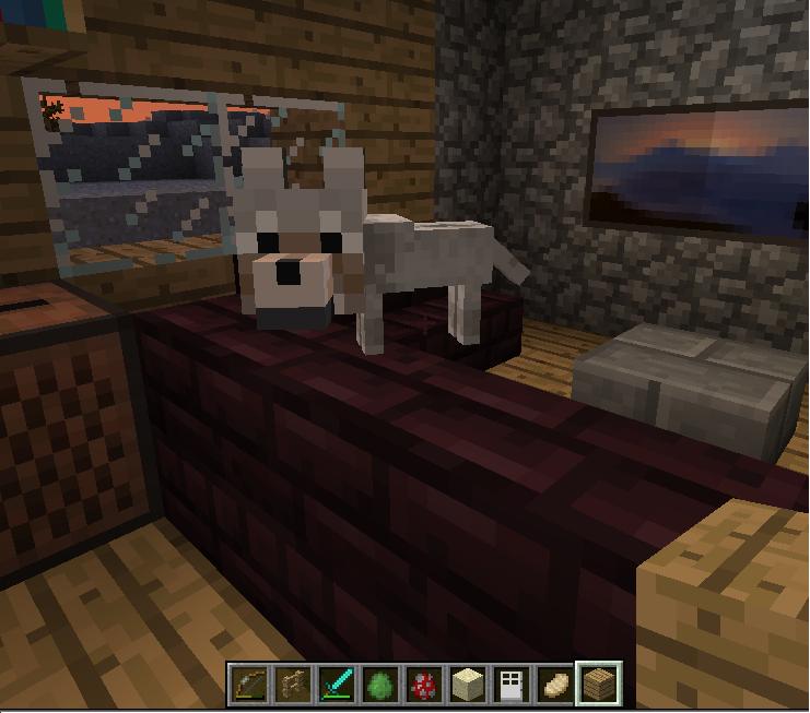 - Los lobos domesticados tienen mucha dificultad para caminar por las puertas abiertas. Para evitar este problema, lo mejor es instalar una puerta para el lobo bajo la misma, quitando solo un bloque en la esquina inferior izquierda o derecha de la puerta.