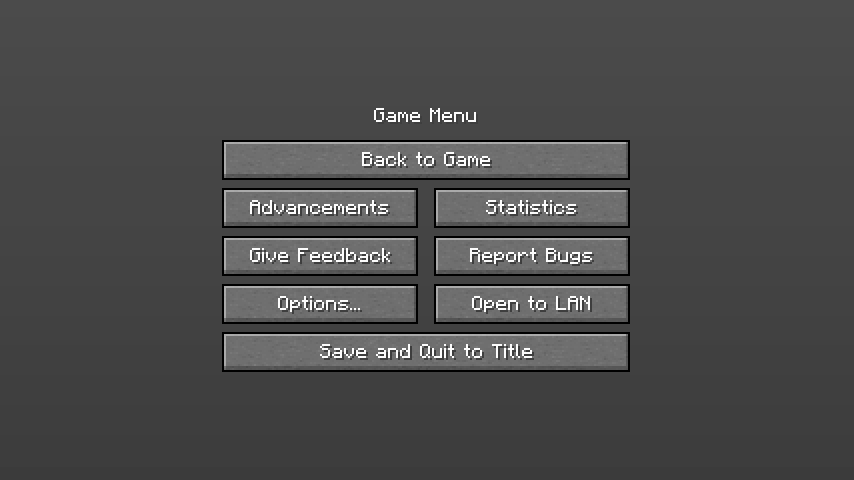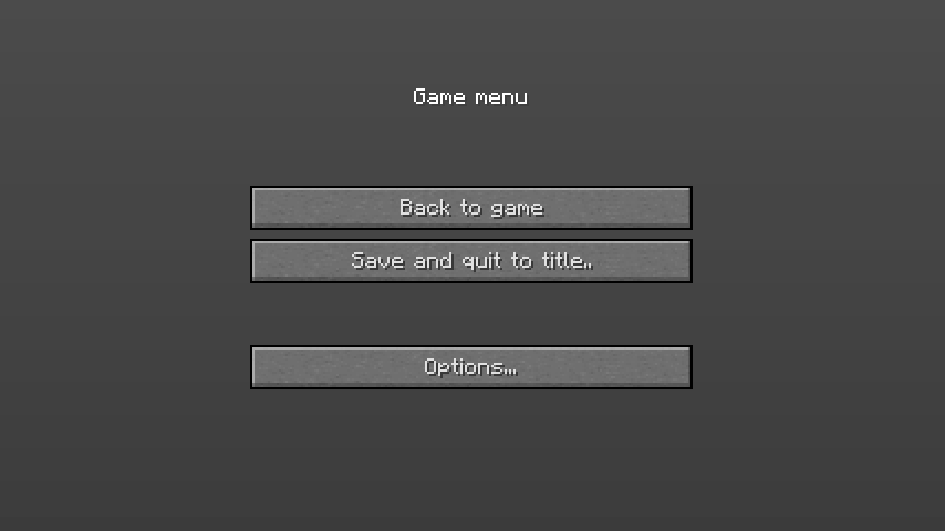 Se puede acceder a este menú en cualquier momento (cuando no esté en una GUI) pausando el juego con la tecla Esc de forma predeterminada.