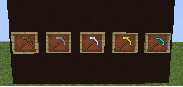 Picos de madera, piedra, hierro, oro y diamante en marcos.
