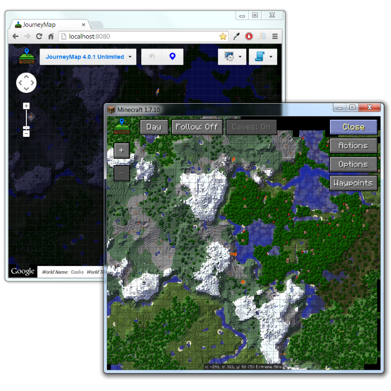 Mod Forge de cliente y servidor para mapeado en tiempo real para un jugador y multijugador. Mapeo de día/noche/superficie/cuevas y zonas. Compatible con servidores Bukkit/Spigot con multimundo. La PI de JourneyMap permite que se usen otros plugin e interfaces en el mapa. | Active | Java Edition 1.12.2 | No | Java, DHTML | Techbrew | |||