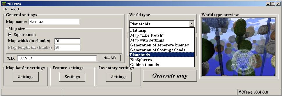 Puede generar mapas planos, biosferas, desiertos, túneles de oro y planetoides. | Inactive | Java Edition 1.2.5 | No | Delphi | Mozzg | |||
