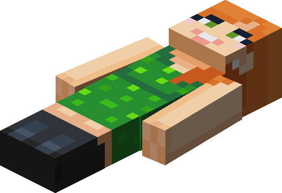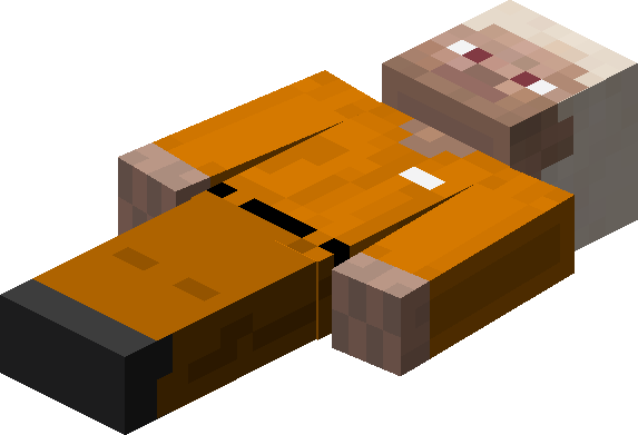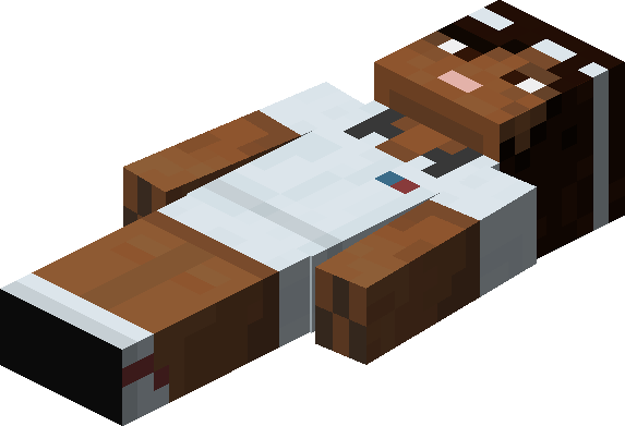 Todas las criaturas pueden dormir en camas con comandos, pero solo algunas poseen una animación para recostarse, y la usan en determinadas situaciones. Además, al igual que con los jugadores, la caja de colisión se reduce a 0.2 bloques de altura. La lista es:
