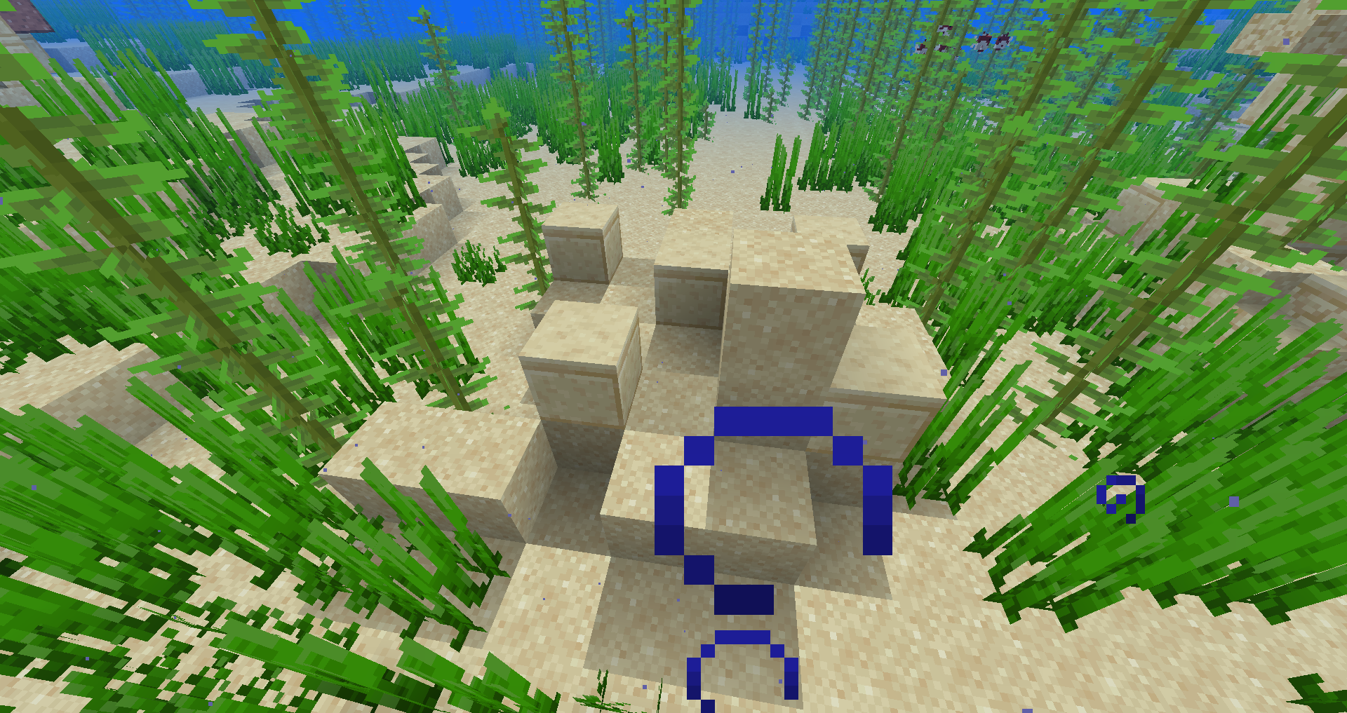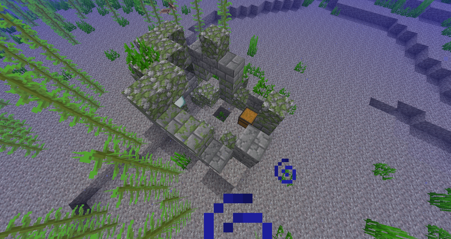 Todas menos dos de las estructuras contendrán un cofre con botín dentro. El cofre puede ser un cofre pequeño o grande dependiendo del tamaño y tipo de la estructura de ruina bajo el agua y puede ser enterrado por algún tipo de material como grava y arena.