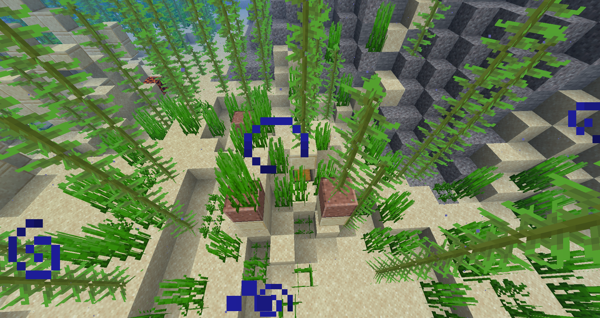 39 Cut Sandstone 4 Light Blue Terracotta 1 Magma Block 1 Chest (random loot) |
