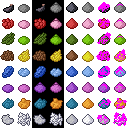 - Los jugadores pueden obtener cada uno de cada color con 1 semilla de cacao, 2 tintes amarillos, 2 sacos de tinta, 3 tintes verdes, 4 lapislázuli, 4 tintes rojos y 6 polvos de hueso (2 huesos).