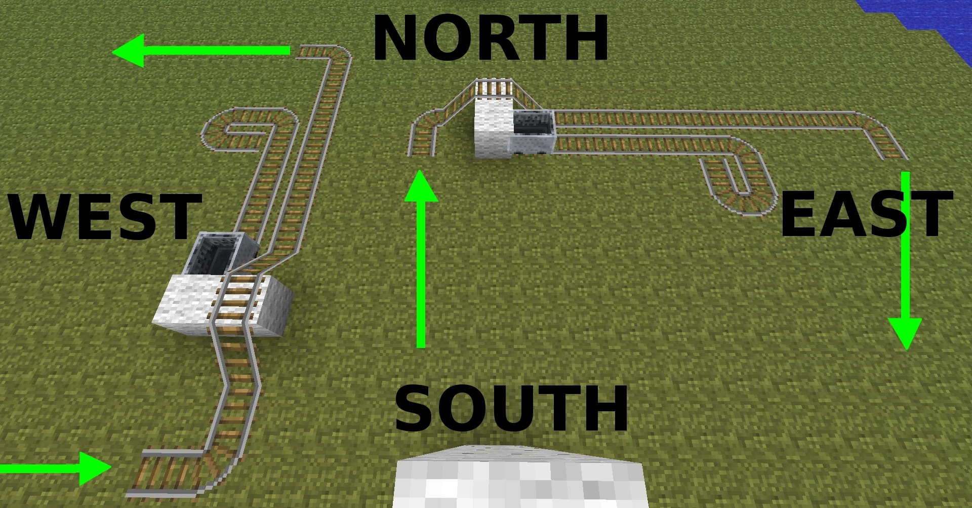 Hay dos posibles formas de crear boosters unidireccionales que se resetean solos basándose en la regla del sur-oeste. La de la izquierda proporciona impulso del sur al norte, y la segunda del oeste al este.