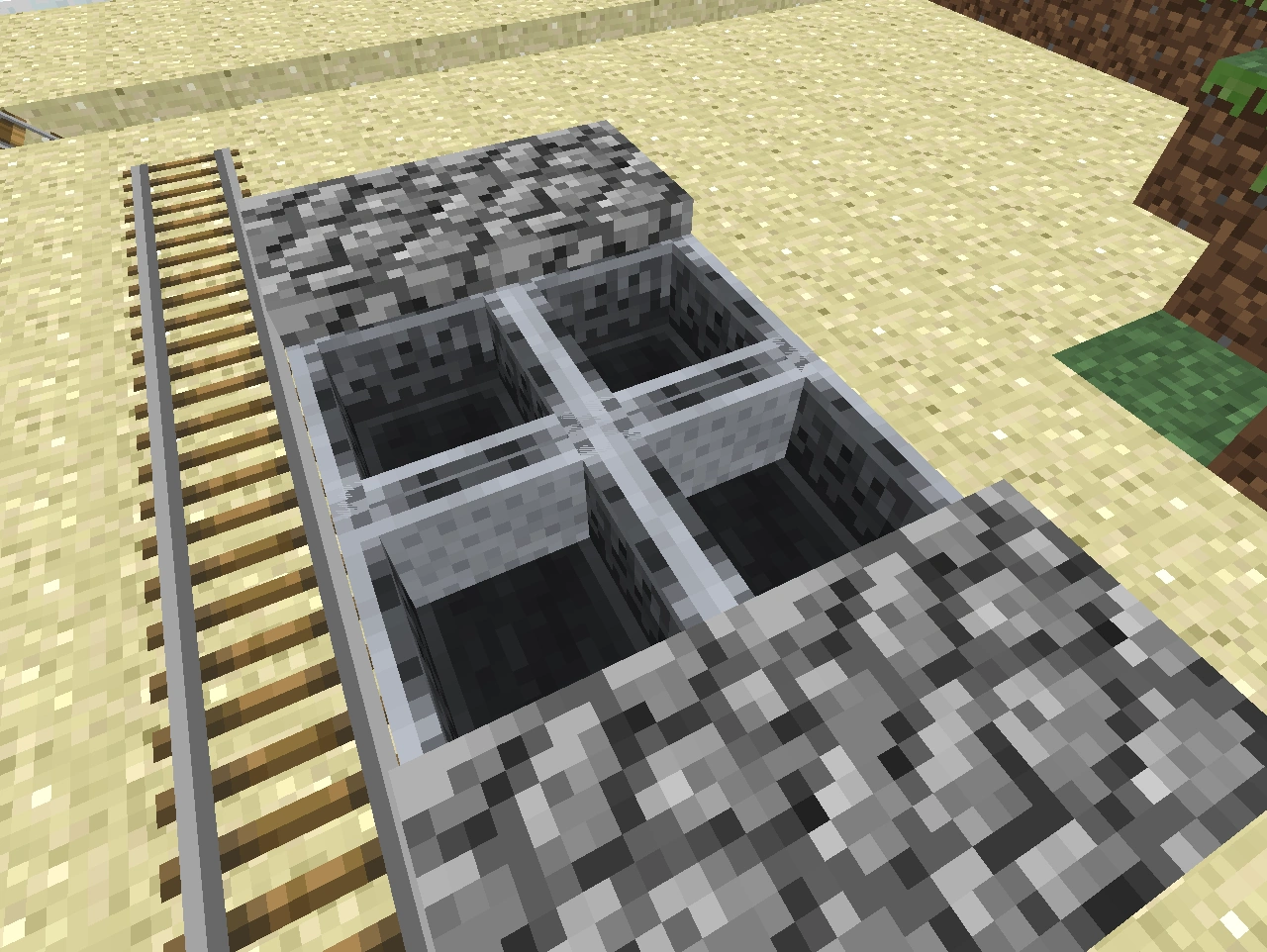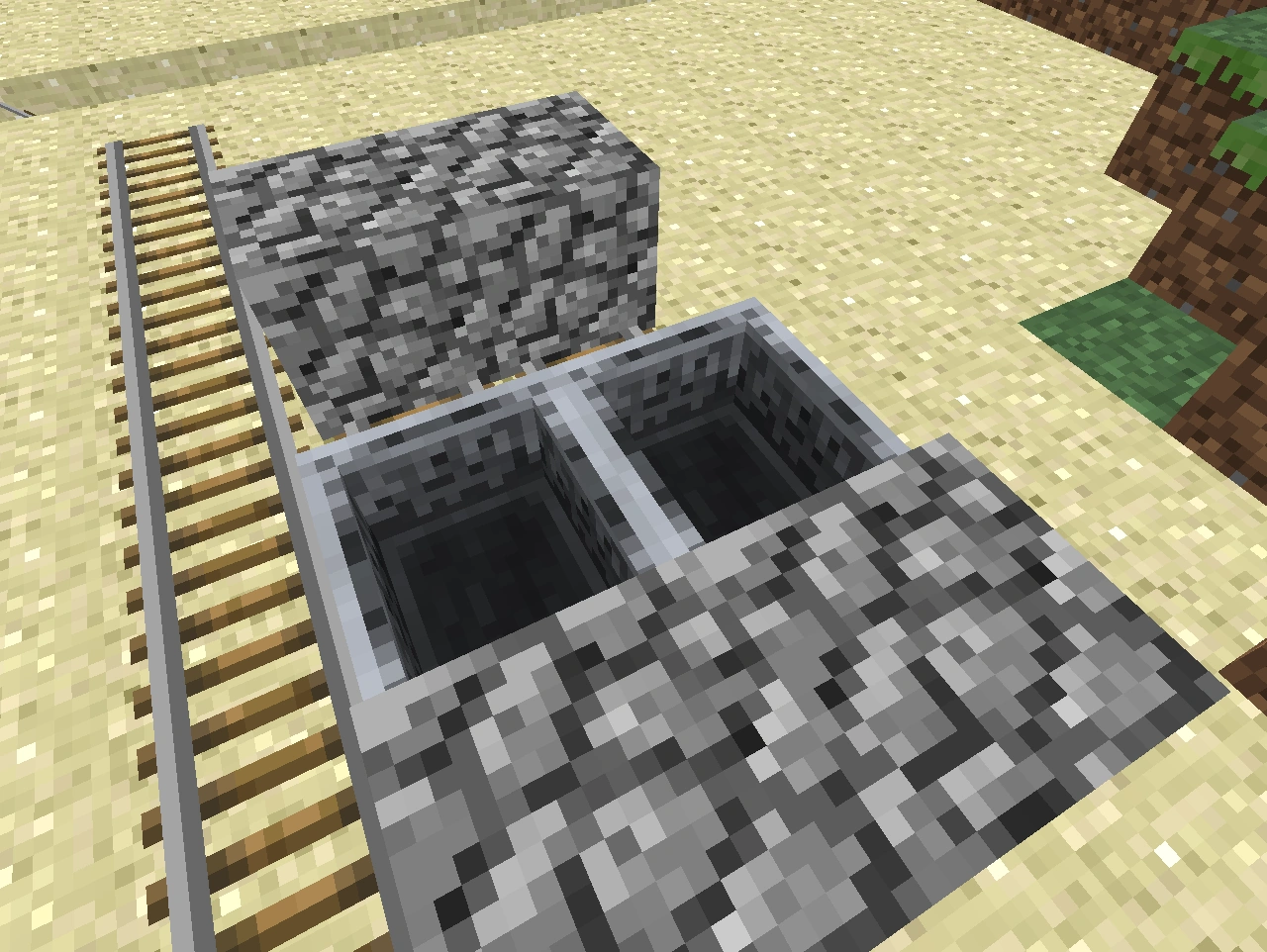La vagoneta se apoya sobre la puerta, que se conecta al botón de piedra utilizando Redstone. Cuando la puerta se abre momentáneamente la vagoneta cae en la sección de vía inclinada junto a la vagoneta a ser impulsada.