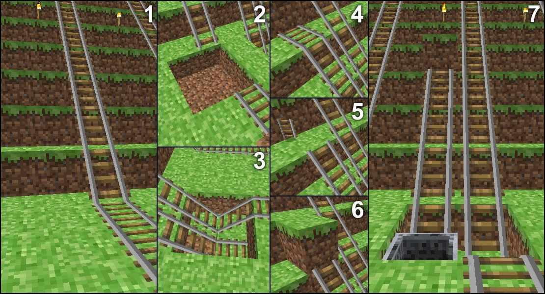 - Cava un agujero de 2x2x1 que contenga a tu vía principal.