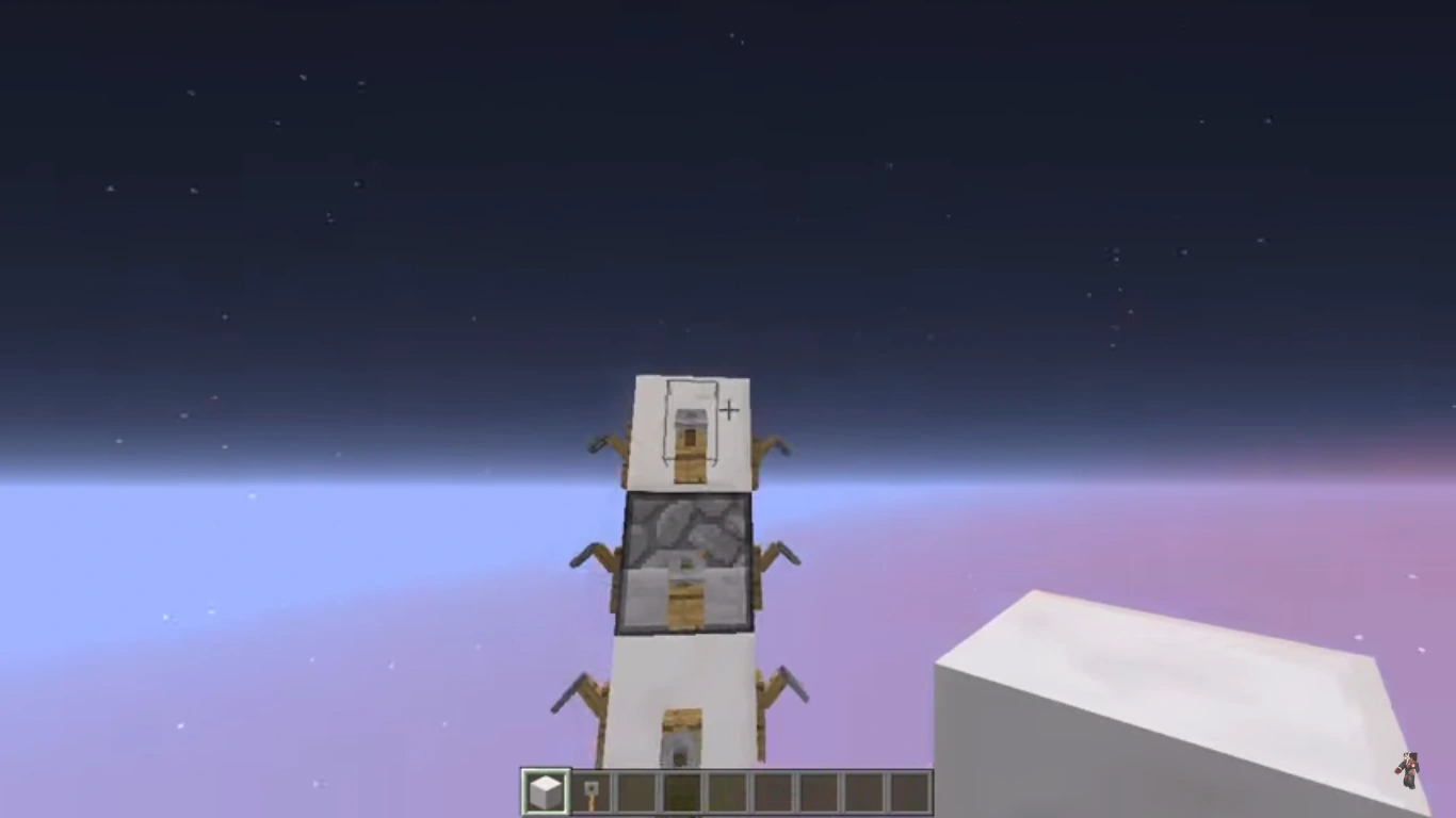 Consiste en un gancho que, cuando se actualiza, da corriente al pistón (mediante el bloque blanco). El pistón se activa, sube los bloques arriba y el bloque de redstone activa el dispensador de encima. Justo después, el pistón se retrae y el bloque de slime recoge al bloque de redstone. (ver ejemplo de la derecha). Tiene 4 salidas (una por cada lado del pistón). Aquí un vídeo-tutorial muy sencillo que explica su funcionamiento y funciones: