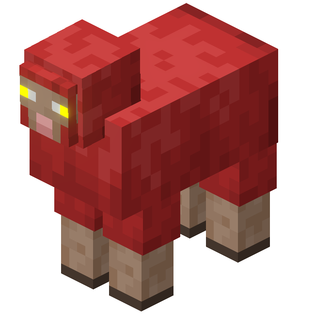 El ataque de la oveja roja es bastante pequeño y camina alrededor, ardiendo turbas a su alrededor. Es pasivo, a diferencia de la oveja verde.
