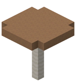 Los hongos enormes consisten de los mismos tipos de bloques por su estructura, los datos de los bloque deciden la textura. La textura por defecto de todos los lados inferiores es carnosa. La textura de la parte superior puded ser tanto de un hongo café como de un hongo rojo, las texturas de los poros y los tallos son idénticas. Las direcciones en la tabla de abajo se refiere a los números vistos como dirección en la pantalla F3.