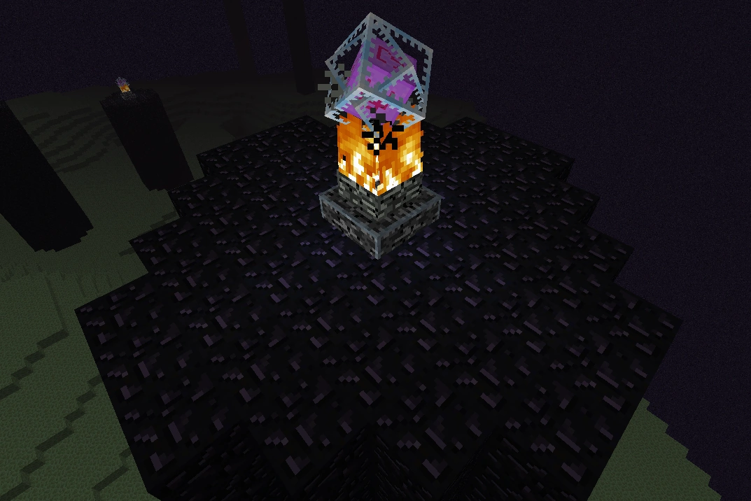 - Ender-kristallin päälle voi asettaa paloja niin, että kristalli vaikuttaisi leijuvan niiden läpi.