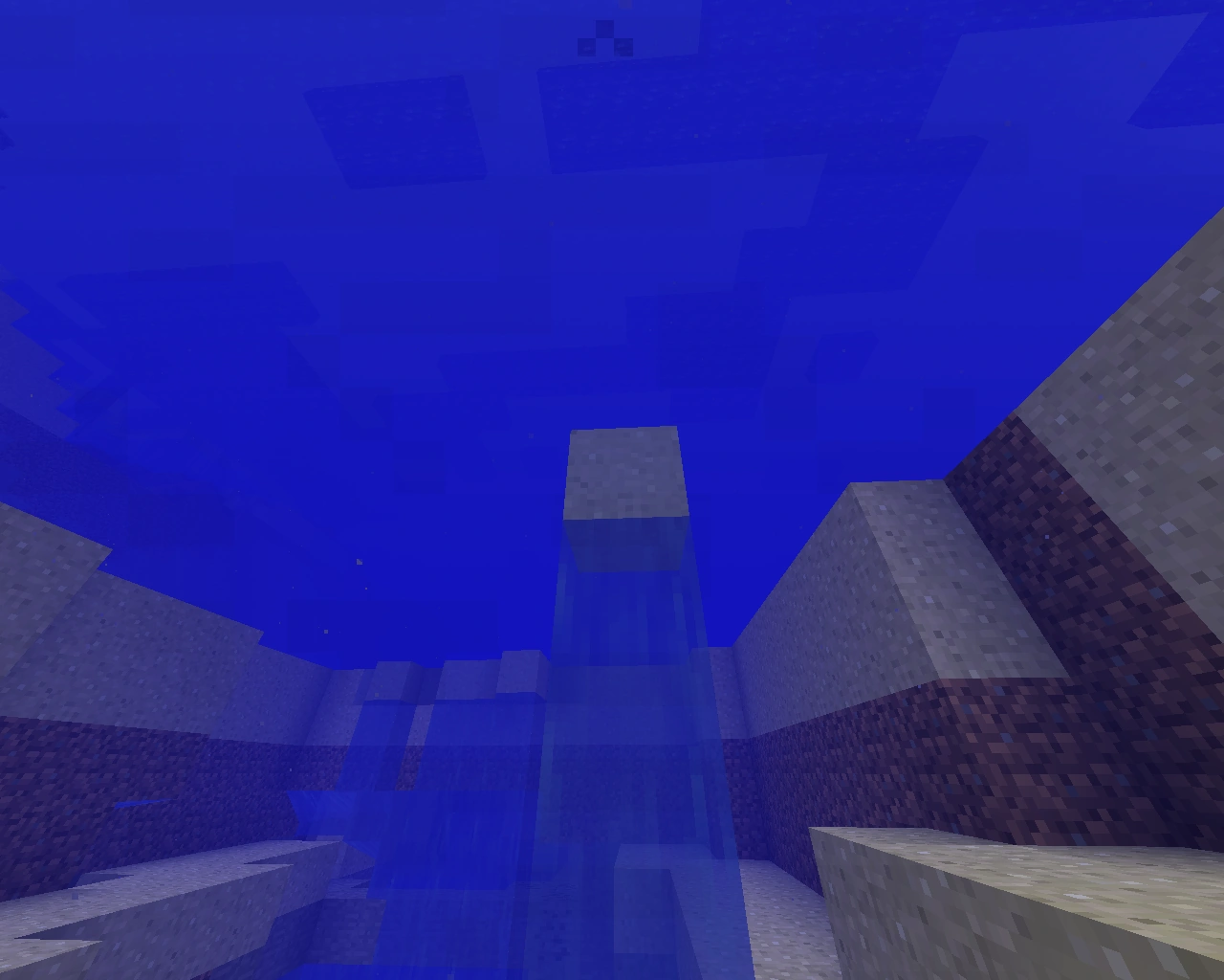 Veden alla oleva hiekka joka ei bugin takia putoa.