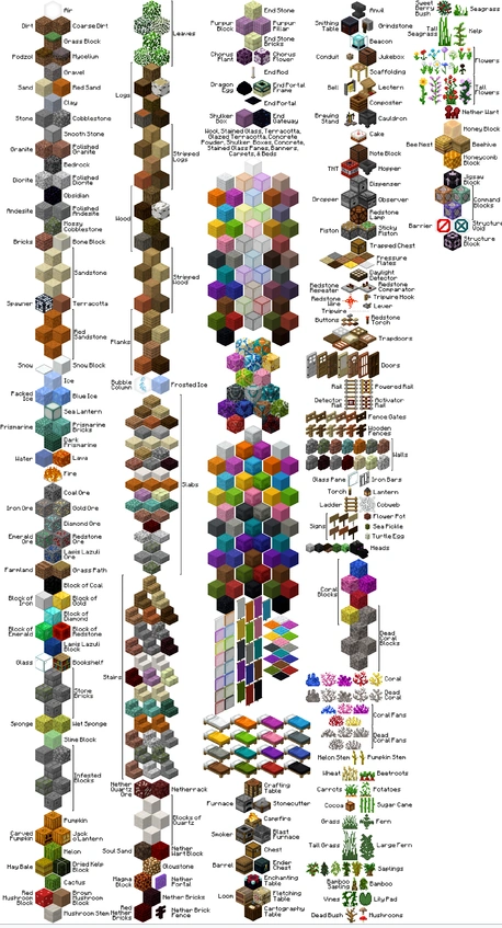 - Kasvit eli usein luonnollisiin paloihin kuuluvat kuutiot, jotka kasvavat, joita voi kasvattaa tai luokitellaan muuten kasveiksi. Minecraftissa myös suuret sienet luokitellaan kasveiksi. Kasveja ovat esimerkiksi kukat, kaktukset ja kurpitsat.