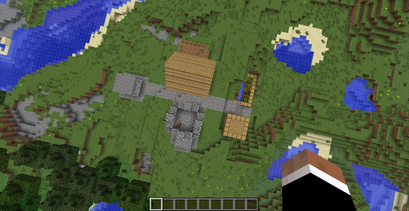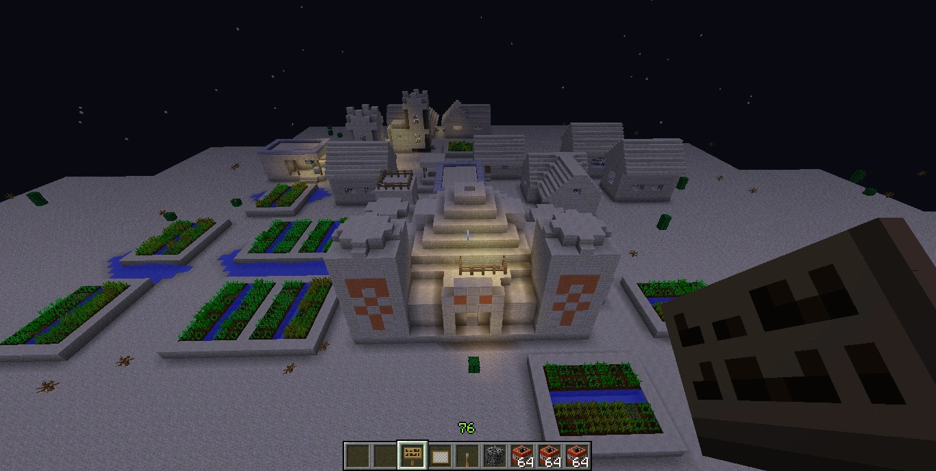 - Suurissä NPC-kylissä voi olla kaksi sulattoa, kaksi kirjastoa, useita taloja (isoja ja pieniä), ja kaksi kirkkoa.