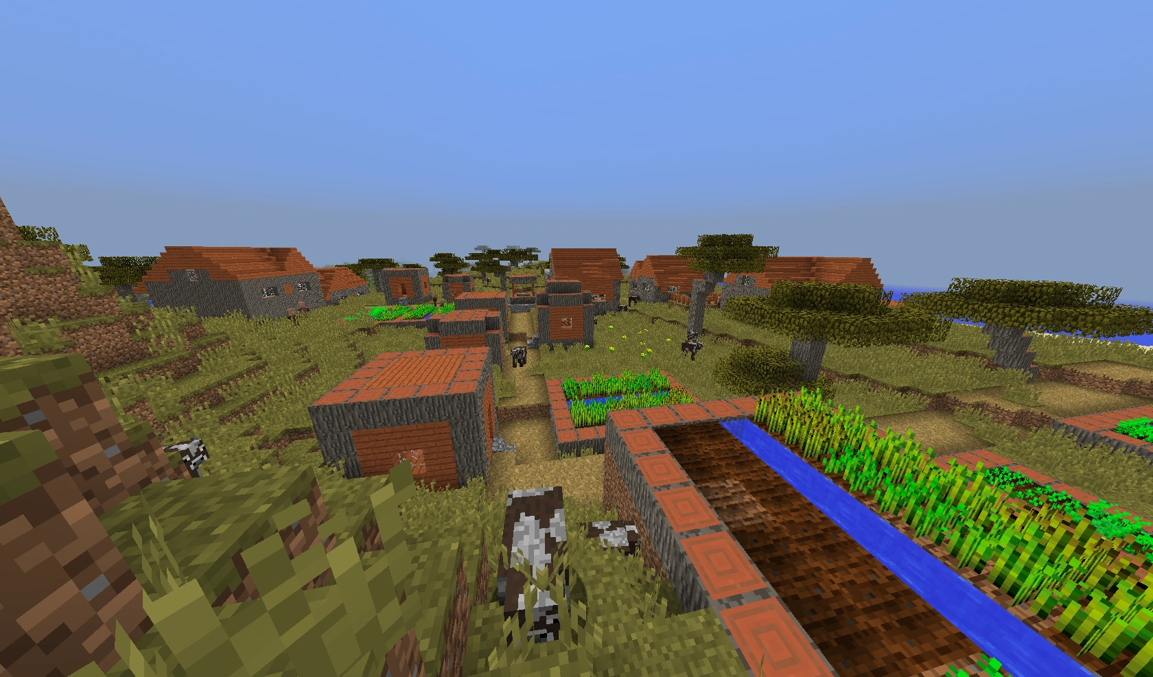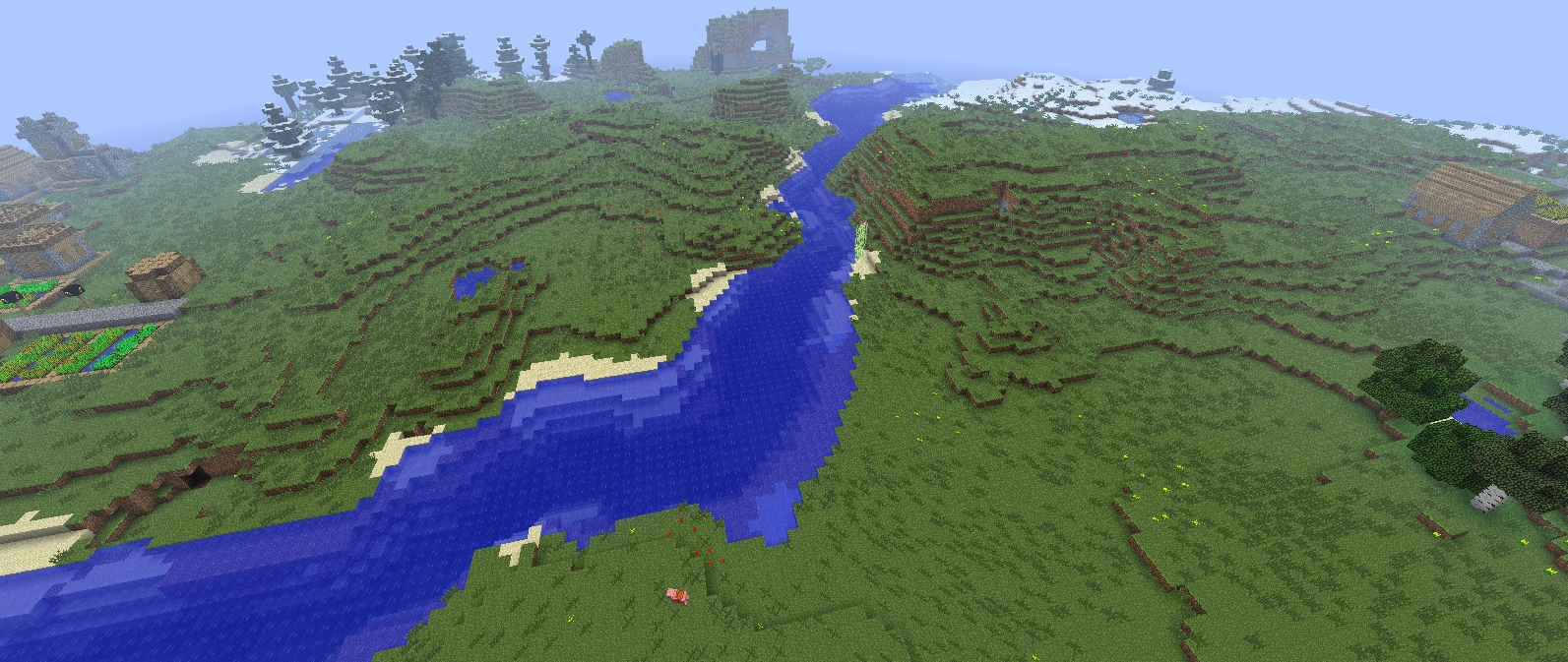 - NPC-kylät voivat generoitua rotkojen päälle niin, että tiet katkeilevat. Joskus kylät voivat olla jopa osittain vajonneet rotkoon.