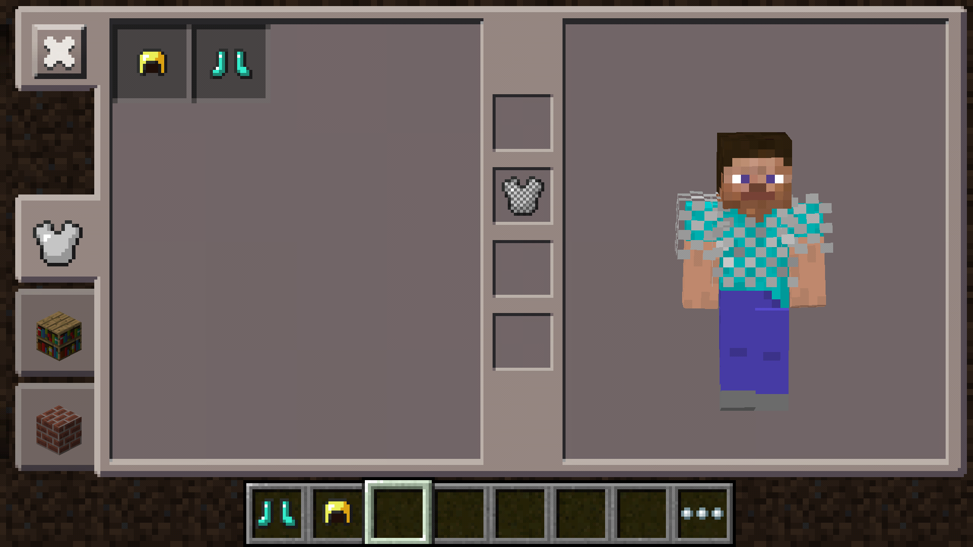 | 1.5 | 13w04a | Une pièce d'armure tenue en main peut être équipée directement en faisant un clic-droit. | |||