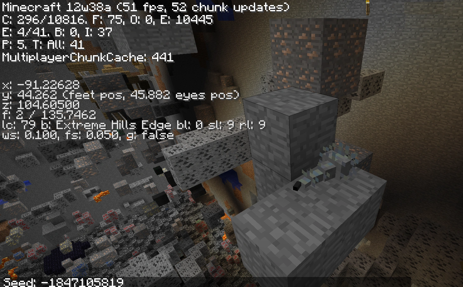 | 0.9.0 | Ajout des blocs infestés ; la seule façon de les créer dans le jeu est avec l'aide des poissons d'argent. | ||||