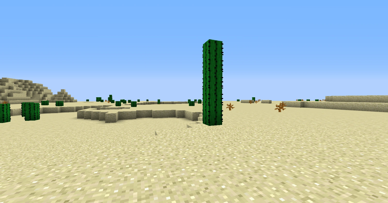 - Il se peut qu'un cactus soit placé sur un arbre pendant la génération de la carte si celui ci a des feuilles au dessus du sable.