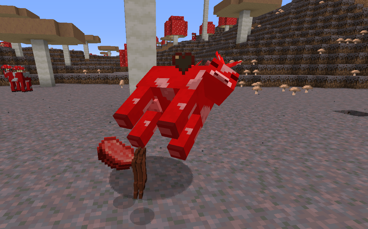| 1.9-pre2 | Faire se reproduire une vache avec une champimeuh donne naissance à un bébé, sa race est aléatoire. La progéniture est plus susceptible d'être du genre du premier animal à qui vous avez donné le blé, à l'instar des moutons. | ||||
