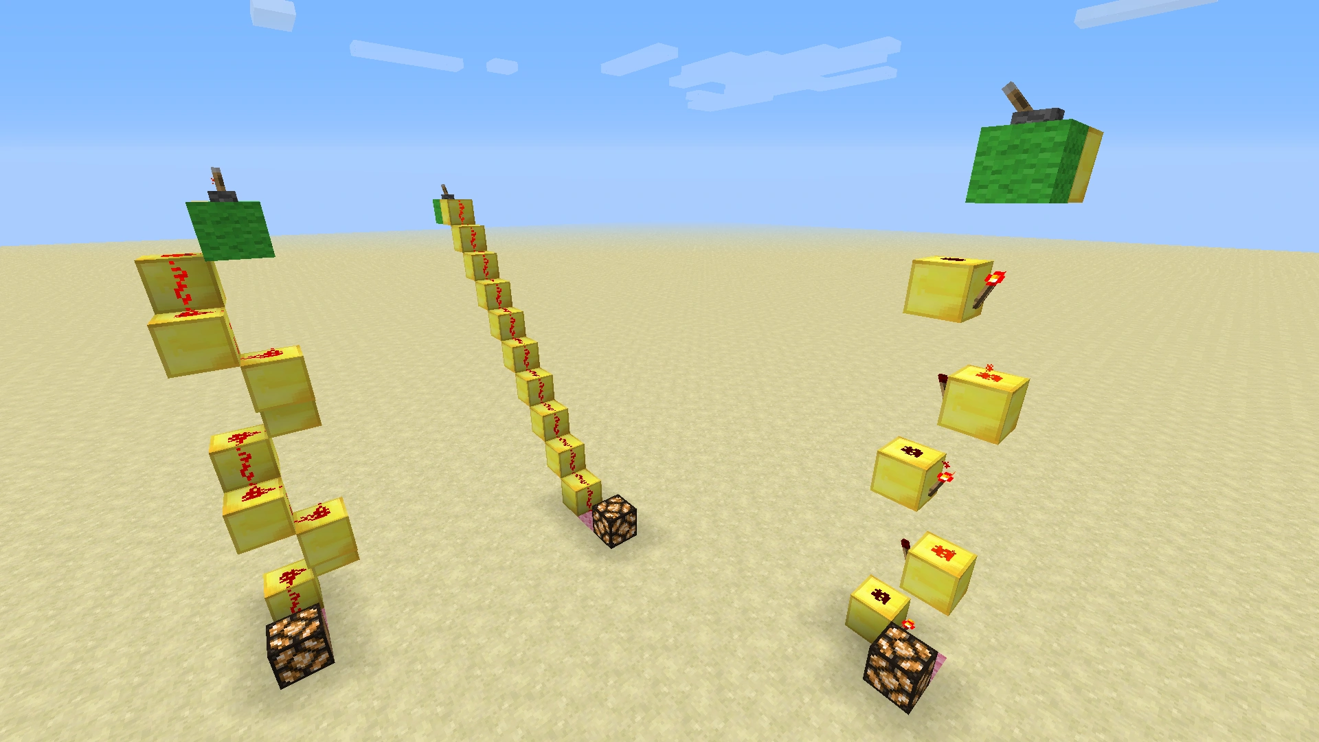 - Une structure qui fait 1 bloc de hauteur ne peut pas comporter de composants comme la poudre de redstone et les répéteurs qui nécessitent un support sous eux. Voir aussi les structures plates.