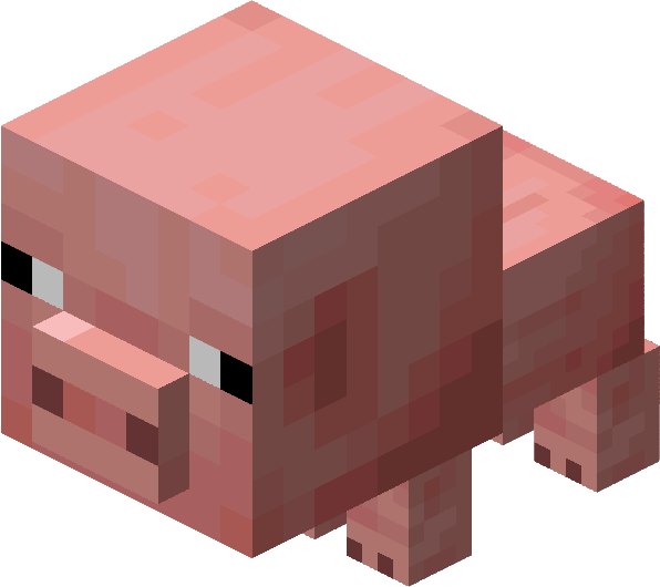 De couleur rose, les cochons font 1,1875 blocs de haut, 0,625 bloc de large et 1,25 blocs de long. Le modèle original de cet animal avait des yeux très proches l'un de l'autre.