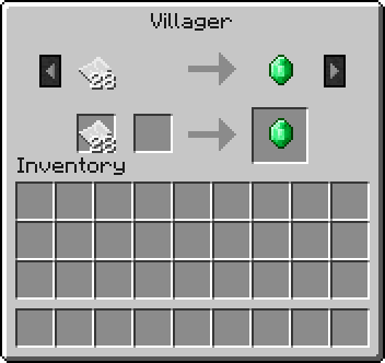 Un clic droit sur un villageois permet à un joueur de commercer avec lui. Les villageois font des offres en fonction de leur profession. Différentes offres peuvent être consultées en appuyant sur les boutons gauche et droit à côté de l'offre actuellement affichée. La plupart des offres impliquent de l'émeraude en tant que monnaie, ou certains éléments relatifs à la profession des villageois (comme des livres ou de la nourriture). Il n'est pas possible de commercer avec les enfants.
