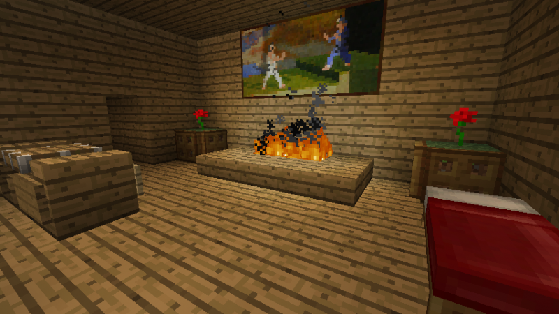 | 1.3.1 | 12w17a | Une maison en dalle de bois avec une cheminée de netherrack utilisant la vieille astuce de la dalle de chêne se comportant comme de la pierre, permettant au feu d'être contenu. Ajout de nouvelles couleurs de dalles de bois. Les dalles de bois sont maintenant vulnérables au feu et peuvent être récoltées plus vite avec une hache qu'avec une pioche. L'ancienne dalle de bois ne brûlait pas et ne pouvait être récoltée qu'avec une pioche car elle partageait la même valeur de donnée que les autres dalles, elles étaient également très résistantes aux explosions par rapport aux planches, ce qui les rendait utiles pour faire des constructions. Cette propriété pouvait être utilisée en multijoueur pour éviter le grief ou pour créer des habitations en bois dans le Nether ; mais, depuis cette mise à jour, elles ne peuvent plus être utilisées pour ces raisons. L'ancienne dalle de bois peut toujours être obtenue grâce à un éditeur d'inventaire ou en utilisant la commande | |||