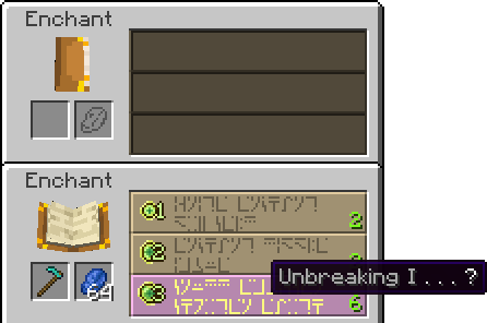 Le joueur, s'il possède suffisamment d'expérience et de lapis-lazuli, peut cliquer sur l'une des trois lignes et récupérer l'objet enchanté. Chaque proposition imprègne l'objet d'un ensemble aléatoire d'enchantements qui dépendent du nombre de niveaux d'expérience nécessaires. Les niveaux d'expérience acquis au cours du jeu servent donc à débloquer les enchantements. Cependant, le nombre de niveaux réellement soustraits au joueur est identique au nombre d'unités de lapis-lazuli demandées, soit entre 1 et 3. Par exemple, si la troisième ligne propose un enchantement au niveau 30, le joueur doit avoir au moins 30 niveaux, mais cela ne lui coûtera en réalité que 3 niveaux et 3 unités de lapis-lazuli.