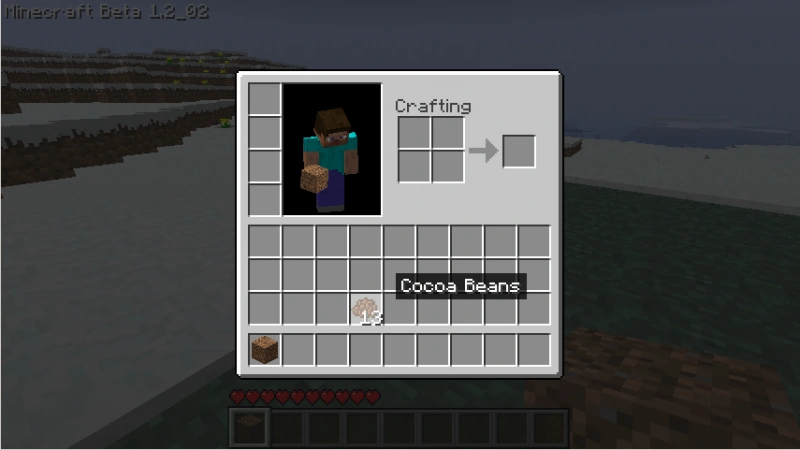 Les fèves de cacao ont été introduites durant la mise à jour Bêta 1.2, mais il était alors impossible de s'en procurer sans avoir recourt à un éditeur d'inventaire. Depuis la Bêta 1.4, les fèves de cacao ont été véritablement mises en jeu car elles pouvaient être trouvées dans les coffres de donjons (80 % de chance). Aussi, depuis cette mise à jour, les moutons bruns peuvent apparaître naturellement, ce qui rend la trouvaille de laine brune plus facile. Depuis la mise à jour 1.3, des cabosses de cacao peuvent être trouvées sur les petits arbres des biomes de jungle, et on peut les faire pousser sur ceux-ci.