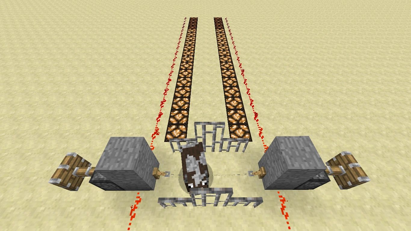 Un fil de déclenchement relié à deux crochets, avec une entité dessus.