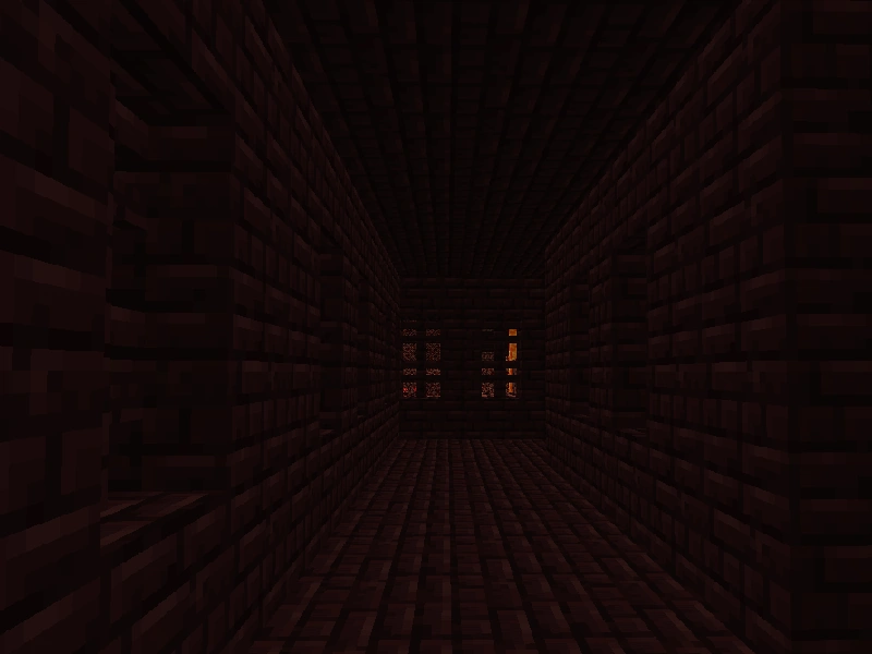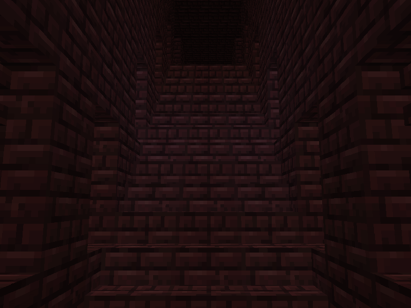 | Couloir | Les couloirs sont de simple passages en briques du Nether. ils conduisent à un escalier, une intersection, une salle, ou dans un cul de sac. On peut y observer des fenêtres (1 case de large par 2 de haut) en barrières en briques du Nether. Des coffres y sont disposés une peu partout. |