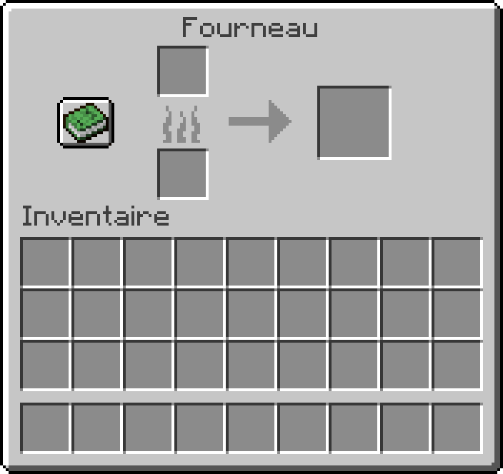 Le fourneau possède un inventaire, accessible en faisant un clic-droit sur le bloc. Cet inventaire possède trois emplacements, liés à la cuisson :