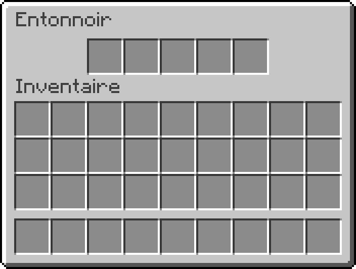 Le entonnoir possède un inventaire, accessible en faisant un clic-droit sur le bloc. Cet inventaire possède cinq emplacements (1 ligne de 5 cases).